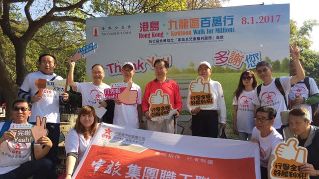 香港公益金2017年首個(gè)大型籌款活動(dòng)「港島、九龍區(qū)百萬(wàn)行」於1月8日舉行。集團(tuán)張學(xué)武董事長(zhǎng)、張逢春總會(huì)計(jì)師、職工聯(lián)誼會(huì)盧瑞安會(huì)長(zhǎng)和集團(tuán)100多名員工一起參與了這項(xiàng)慈善活動(dòng)。今年,集團(tuán)首次以集團(tuán)職工聯(lián)誼會(huì)與中旅慈善基金名義共同參與公益金百萬(wàn)行,幷向公益金捐款2萬(wàn)港元,充分體現(xiàn)了集團(tuán)積極參與社會(huì)事務(wù)、履行社會(huì)責(zé)任的優(yōu)良傳統(tǒng)。